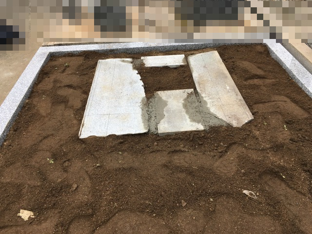 墓石の工事を下から順番に据え付けていきます。