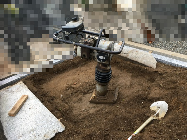 先ずはランマーで締固め基礎工事を行います。