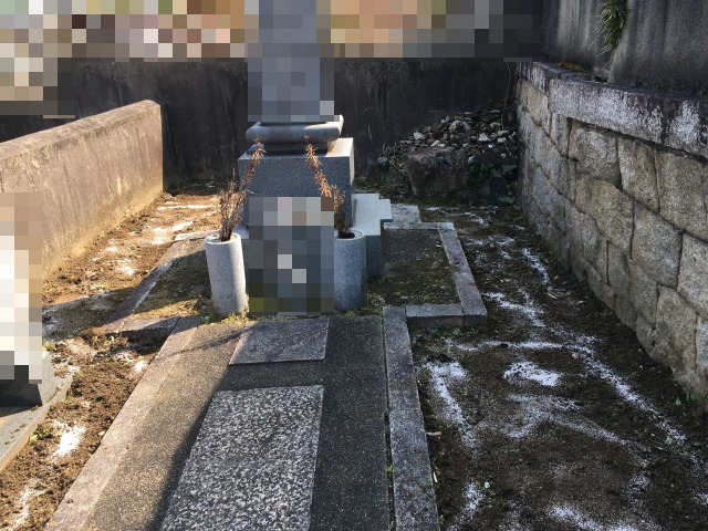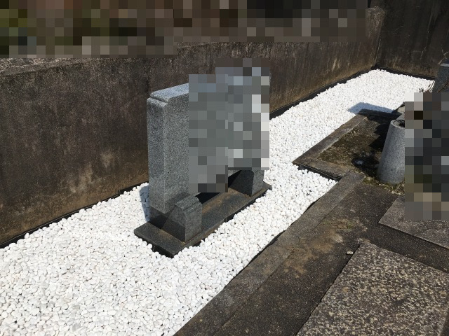 岡山県倉敷市H家様のお墓で防草処理の工事をさせていただきました。