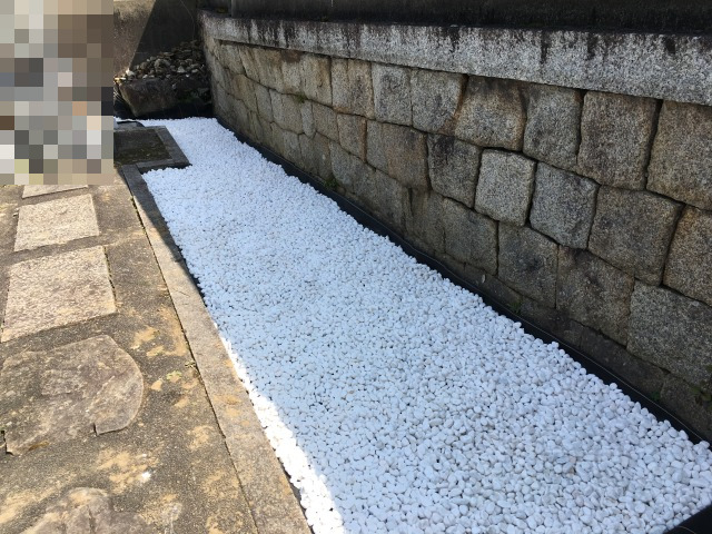 防草のやり方を防草シートを使用し、表面には白い石を聞くことにしました。